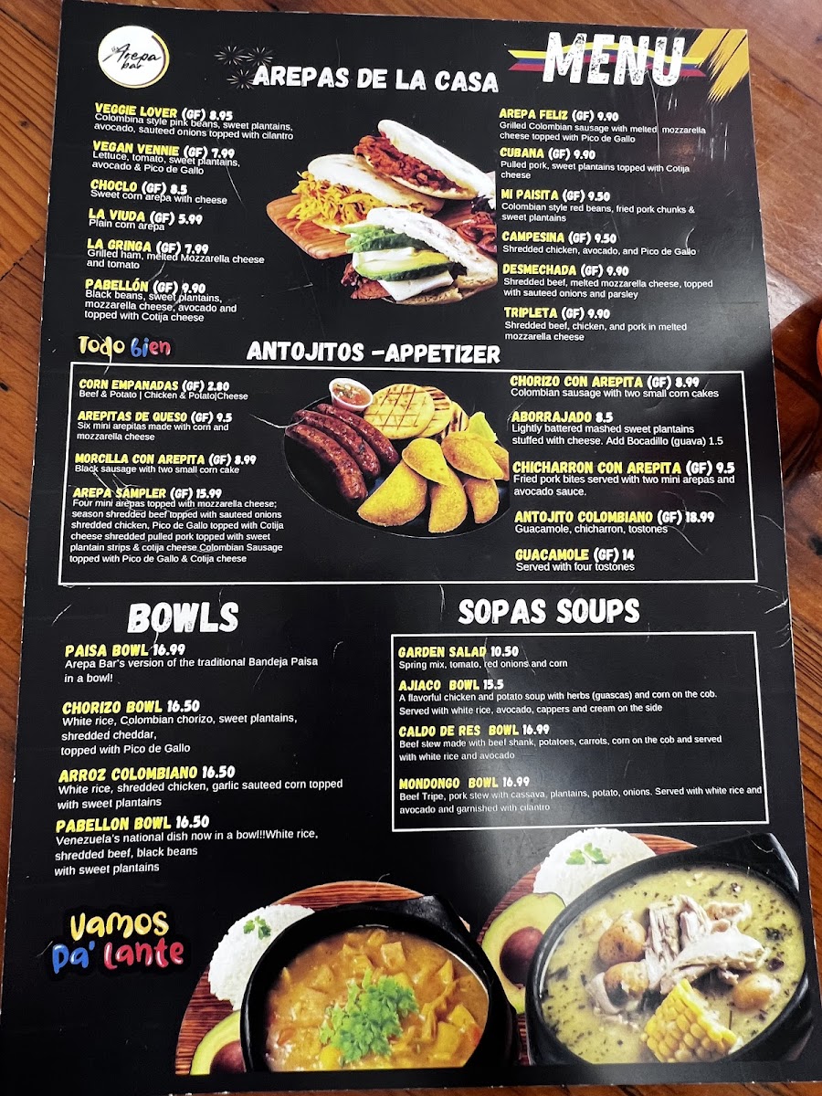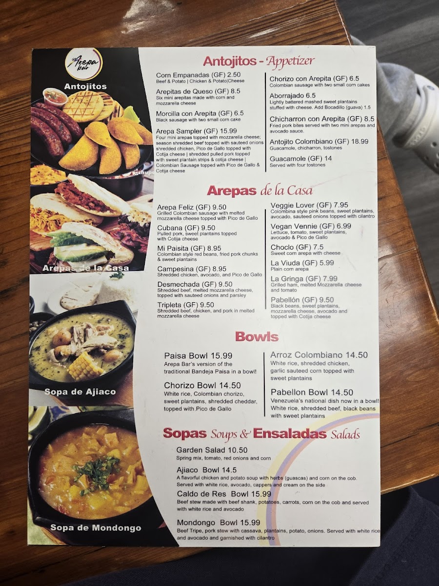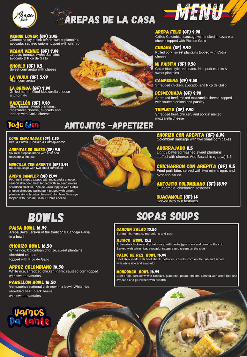 The Arepa Bar Menu